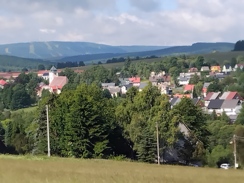 Höhengewinn: 435 m Höhenverlust: 435 m Tourcharakter: 2 (s. Hinweise zum Schwierigkeitsgrad)höchster Punkt: 954 m niedrigster Punkt: 793 m Tourlänge/Laufzeit: ca. 18,5 km/ 5,30 Std Im Erzgebirge gibt es viele Spitzberge, aber kaum ein anderer Ort hat soviele zu bieten wie Schmiedeberg (tschech. Kovarska. Hier gibt es gleich 3 an der Zahl, den kleinen, mittleren und den, am bekanntesten, großen Spitzberg. Letzterer ist allerdings kein Bestandteil dieser mittelschweren Rundwanderung. Bei dieser Tour stehen der mittlere Spitzberg sowie die Grube Kovarska im Mittelpunkt. In den 1950er Jahren unternahm der tschech. Staat ein groß angelegtes Erkundungsprogramm nach Eisenerzen und Uran. Der heute noch bestehende Schacht Kovarska ist ein Bestandteil dieses Programmes gewesen. Er wurde 1956 geteuft und erreichte eine Tiefe von 544 m. Heute ist er Tiefbrunnen der Wasserwirtschaft.