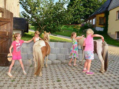 Während die Großen Ruhe und Entspannung finden, gibt es für unsere kleinen Gäste hier viel zu entdecken und jede Menge Platz zum Herumtoben. Unsere Ponys Rosalie und Lotte lassen sich gern reiten, möchten auch geputzt oder einfach nur gestreichelt werden. Auch bei den vielen anderen Tieren, die täglich versorgt werden, bieten wir auf Wunsch und Interesse die Mitarbeit auf dem Hof an.