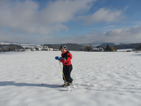 Eine Sonnenloipe in unserem "Kleinnorwegen"! Die Strecke verläuft ausschließlich über offenes Feld (Verwehungen möglich). Bleibt man oben auf dem Plateau (ca. 1,5km), ist sie flach und leicht zu fahren ("Staudtfeld kleine Runde"). Fügt man die Schleife zum Lärchenweg mit an (ca. 2,5km), wird die Runde anspruchsvoll. Eine eigene Skatingspur ist vorhanden.