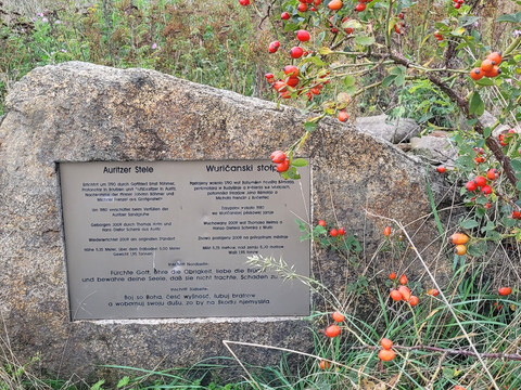 Die Tour verlässt Bautzen in Richtung Naturpark, einem kleinen Naturidyll unweit der nahen Sternwarte. An dieser vorbei, nach dem Weg mit den eindrucksvollen Eiszeit-Findlingen sich links haltend, geht es nach Auritz. Vorbei an der Auritzer Stele oder auch "Russensäule", biegt später im Ort links der Auritzer Weg ab. Die B6 zu querend kommt man bald in Bautzens Ortsteil Nadelwitz an. Am halbrechts gelegenen Schafberg beginnt gen Litten eines der größten jungsteinzeitlichen Gräberfelder Europas, Näheres darüber weiß das Museum Bautzen. Der Weg hoch auf den Schafberg lohnt, wo 1813 Napoleon auf einer Trommel sitzend die "Schlacht bei Bautzen" beobachtet haben soll. An der Niederkainaer Straße links und nach ca. 300 m wieder links geht es dann zurück nach Nadelwitz. An der Straßengablung nimmt man die "Schafbergstraße" rechts. Auf der Löbauer Straße herauskommend rechtsherum, geht es wieder der Altstadt Bautzens zu. Lohnend ist ein Abstecher, um über den eindrucksvollen Taucherfriedhof zu gehen mit Grufthausstraße und vielen eindrucksvollen Grabmalen von Barock bis Jugendstil.