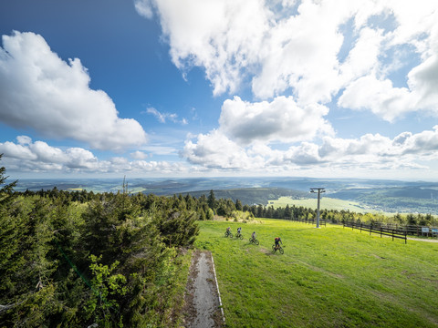 Ausgangspunkt der Tour ist die Talstation der Fichtelberg Schwebebahn, von hier aus fahren Sie über den Büttnerweg und die Karlsbader Straße auf die Alte Poststraße Richtung Boží Dar. Vor der Grenze biegen Sie rechts ab und radeln vorbei am Neuen Haus zur Sparkassen-Skiarena. Auf schattigen Waldwegen geht es über das Flächennaturdenkmal Börnerwiesen weiter nach Tellerhäuser. Der Weg führt Sie weiter durch das waldreiche Naturschutzgebiet Fichtelberg. Über den Ausrückeweg gelangen Sie bis zum „Roten Vorwerk“. Die letzten Meter der Tour verlaufen parallel zur Vierenstraße und führen Sie entlang des Schindelbachtales zurück nach Oberwiesenthal.