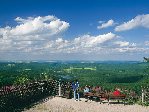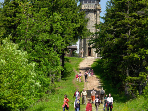 "Auf zum Gipfel!" - Die anspruchsvolle Wanderung auf den zweithöchsten Berg des sächsischen Erzgebirges wird belohnt mit einer phantastischen Rundsicht vom Aussichtsturm.