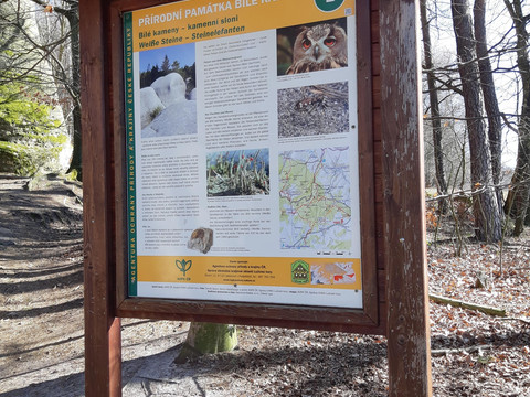 Die Elefantensteine (Sloní kameny, auch Weiße Steine, Bílé kameny) sind auffällig weiße Felsformationen, die von der Straße aus an der Steigung zum Bergsattel Jitravské sedlo zwischen den Städten Jablonné v Podještědí und Liberec zu sehen sind. Die Weißen Steine sind durch drei breite, fastsenkrechte Felsspalten in mehrere einzelne Felsblöcke geteilt, die eine kleine Felsenstadt bilden. Aufgrund ihrer Form werden sie Elefantensteine genannt, denn aus der Ferne sehen sie wie eine Gruppe von Elefanten aus. Die Felsen befinden sich auf dem sog. Kammweg, der interessante Orte der Gipfelregionen der Berge miteinander verbindet.